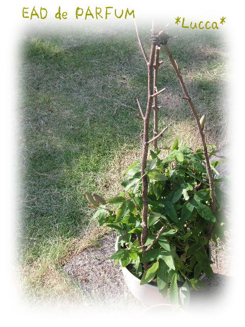 一回り大きな鉢に植えて 枯れ枝で アーチを作ってみました